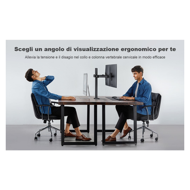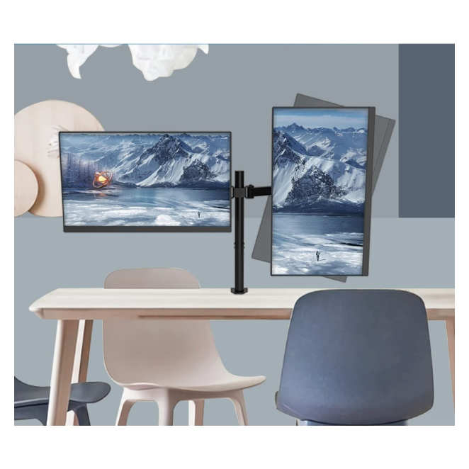 Soporta dos monitores, optimizando el uso del espacio y mejorando la eficiencia en tu trabajo diario.