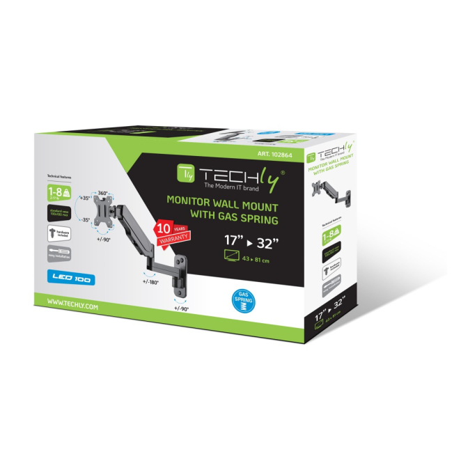 El Techly ICA-LCD G112 ofrece múltiples beneficios para aquellos que necesitan una montura de TV negra que sea a la vez funcional y estética. Con su avanzado sistema de ajuste, el soporte permite inclinaciones de hasta 35 grados y giros completos de 360 grados, ofreciendo una flexibilidad ajustada a cualquier necesidad de visualización. La capacidad de soportar un peso máximo de 8 kg asegura que es un soporte robusto de TV que no compromete la seguridad de tu televisión. Además, su compatibilidad con diferentes tamaños de pantalla y estándares de montaje facilita su instalación en una variedad de ambientes.