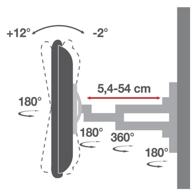 Flexibilidad de ajuste: Ángulos de inclinación y rotación ajustables, y distancia adaptable a la pared.