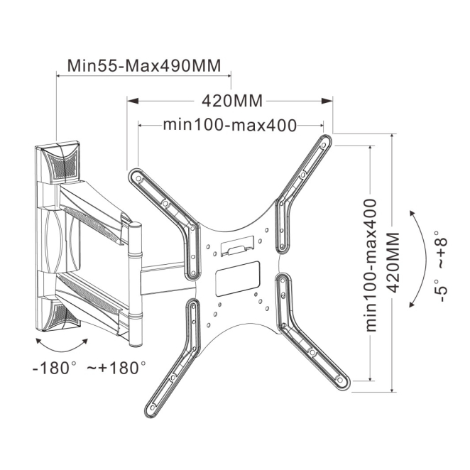 El soporte permite una inclinación de -5° a 8°.