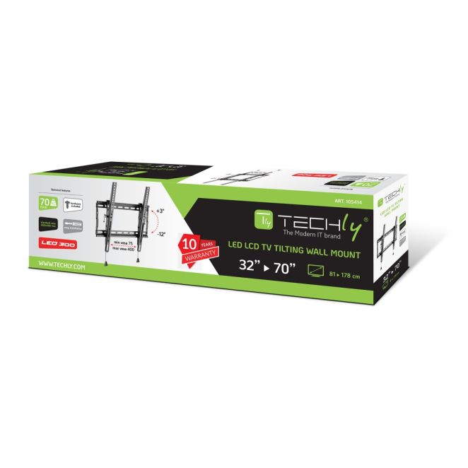 El Techly ICA-PLB 59T soporte para TV es compatible con televisores de un tamaño mínimo de 32 pulgadas y un tamaño máximo de 70 pulgadas.