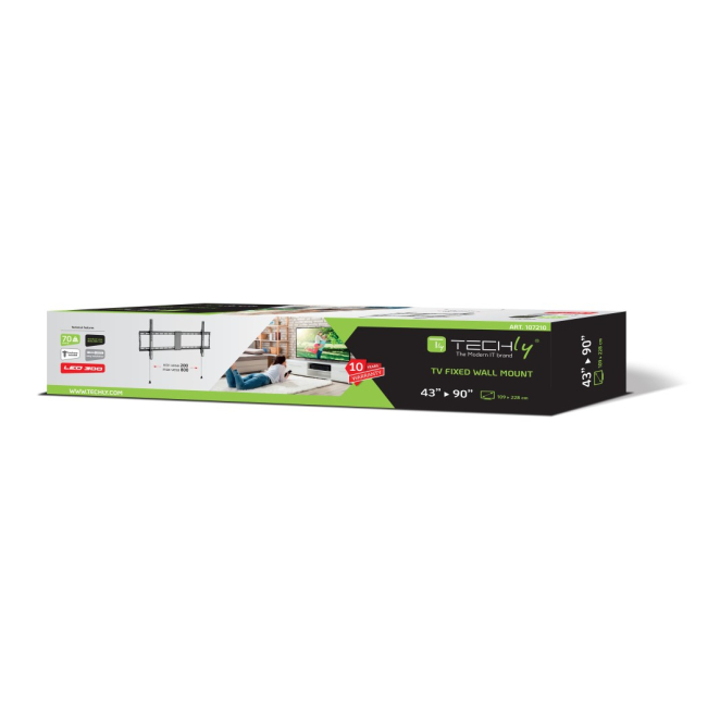 El soporte de pared para TV Techly ICA-PLB 948F ofrece múltiples beneficios que lo hacen una opción deseable. Con su estructura robusta, sostiene de manera segura televisores de hasta 90 pulgadas, proporcionando una solución perfecta para una visualización óptima en cualquier lugar del hogar o la oficina. Este soporte TV robusto también tiene una función antirrobo que añade un nivel extra de seguridad, y su diseño delgado asegura que tu televisor quede a solo 2.9 cm de la pared, optimizando el espacio disponible.