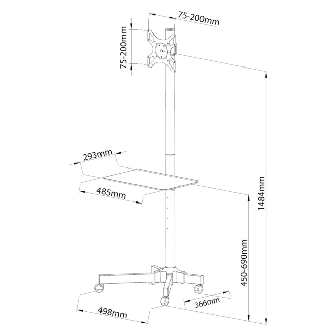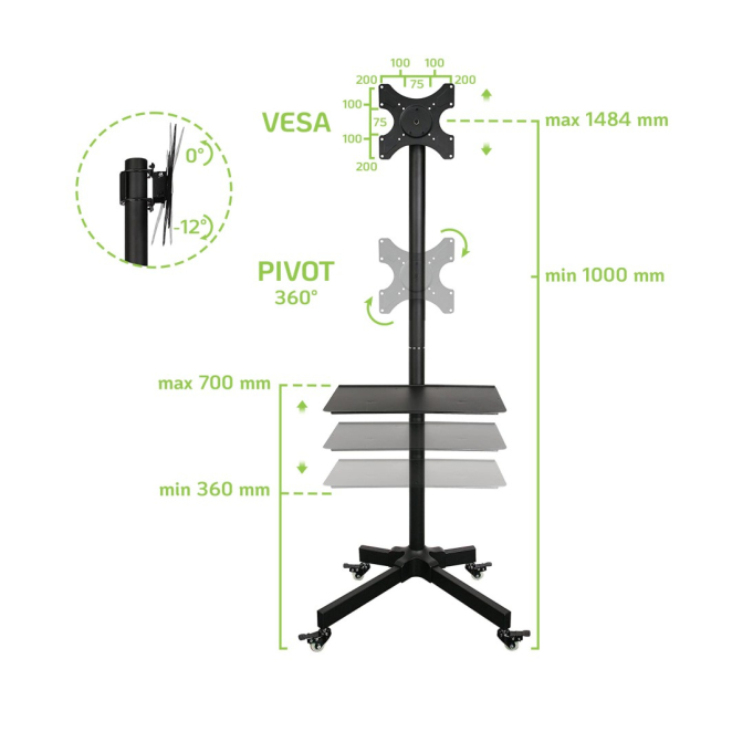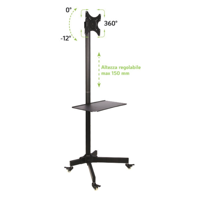 Techly ICA-TR20 soporte para TV 94 cm (37) Negro mostrando ajuste de altura