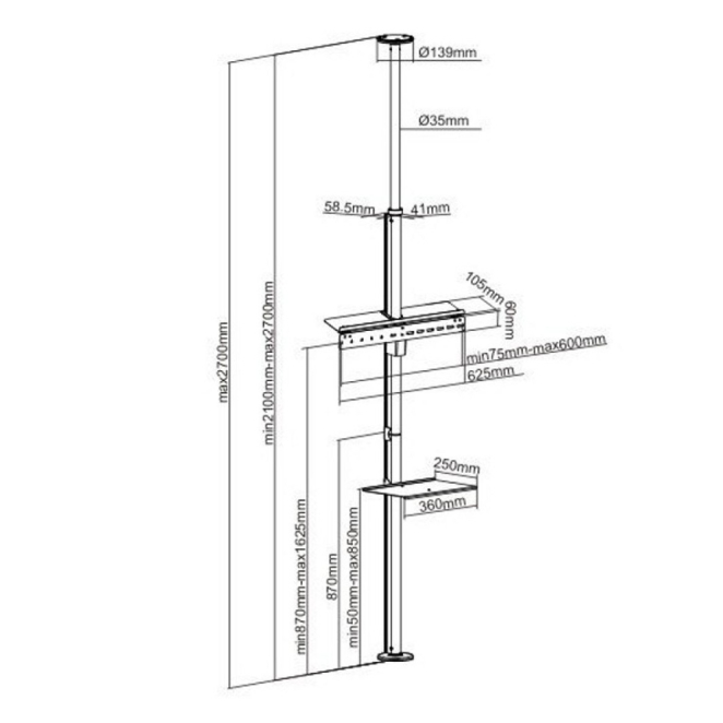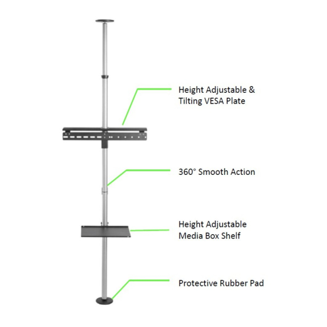 La comodidad del Techly ICA-TR32 soporte para TV reside en su diseño ajustable en altura y ángulo, proporcionando la mejor visualización desde cualquier lugar de la habitación. La función telescópica del soporte hace que ajustar la altura sea un proceso sencillo y rápido. El Techly ICA-TR32 soporte para TV facilita un uso limpio y ordenado, gracias a la gestión de cables integrada.