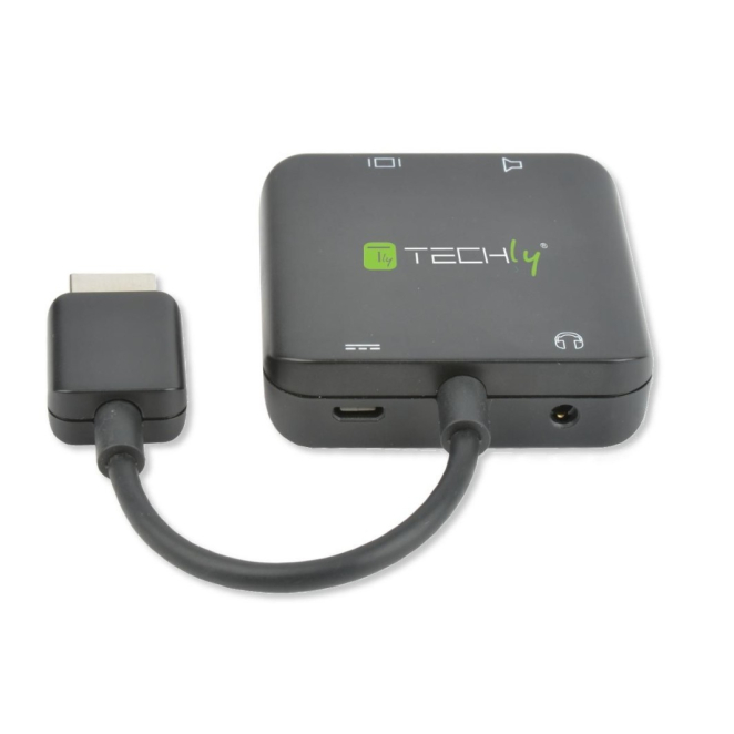 Aquí tienes las respuestas a algunas de las preguntas más comunes sobre el adaptador Techly IDATA HDMI-VGA8: No, el Techly IDATA HDMI-VGA8 es Plug and Play, lo que significa que no necesita software para ser utilizado. Sí, el adaptador Techly IDATA HDMI-VGA8 soporta resoluciones de hasta 2160p, incluyendo 4K. Sí, el adaptador Techly IDATA HDMI-VGA8 es compatible con HDCP 1.3. El adaptador tiene un peso de 62 gramos, lo que lo hace muy ligero y fácil de transportar. Sí, el adaptador cuenta con certificaciones CE y FCC que garantizan su calidad y seguridad. Color del producto Negro Intervalo de temperatura operativa 0-70 °C Intervalo de temperatura de almacenaje -10-80 °C Intervalo de humedad relativa para funcionamiento 10-85 % Intervalo de humedad relativa durante almacenaje 5-90 % Ancho 55 mm Peso 62 g Profundidad 55 mm Altura 16 mm Manual de usuario Sí Certificación CE, FCC Certificados de conformidad CE