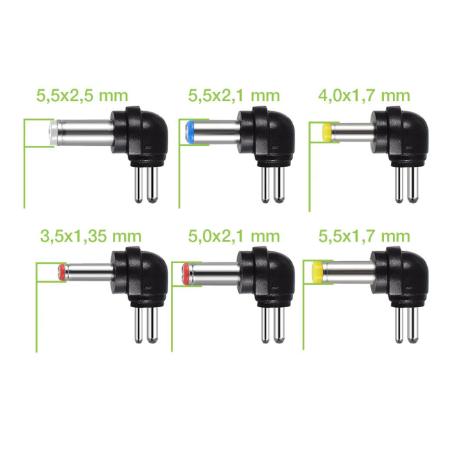El adaptador incluye seis diferentes conectores de salida para adaptarse a varios dispositivos.