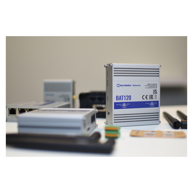 El Teltonika BAT120 UPS es compatible con los modelos RUT2xx, RUT95x, RUT3xx, RUTXxx, TRB14x, TRB2xx, TSW110 y TCR100.