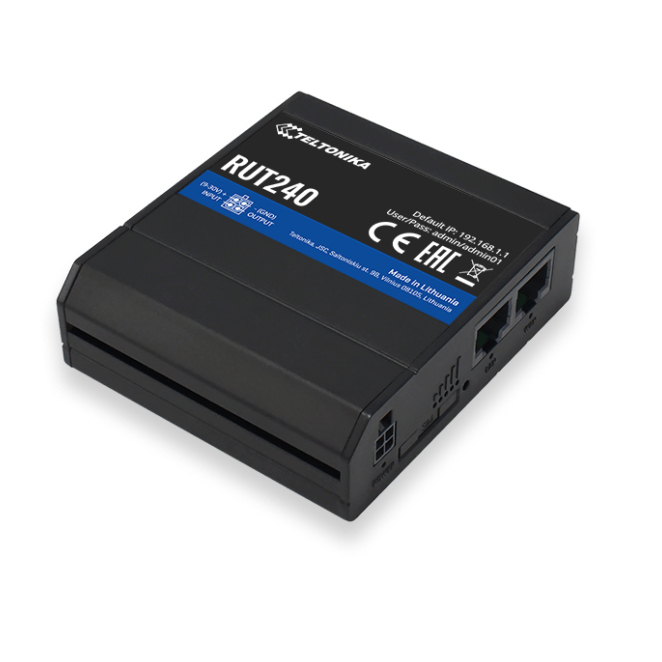 Router Teltonika RUT240, inalámbrico, Ethernet rápido, banda única 2.4 GHz, color negro. SKU: RUT24007E000