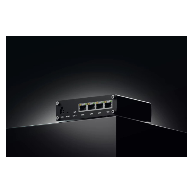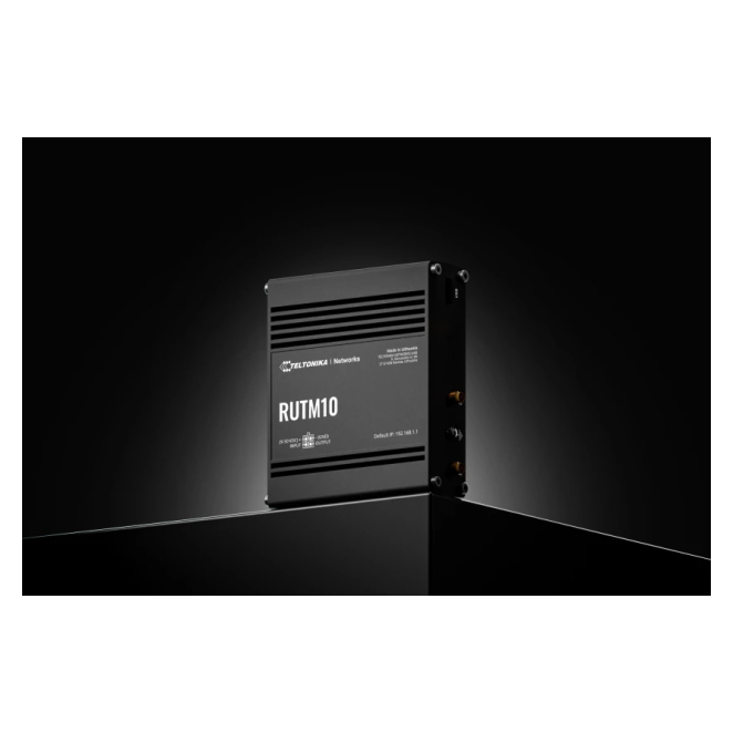 Router Teltonika RUTM10 con conectividad Gigabit Ethernet de doble banda (2,4 GHz y 5 GHz) en color negro, SKU RUTM10000000