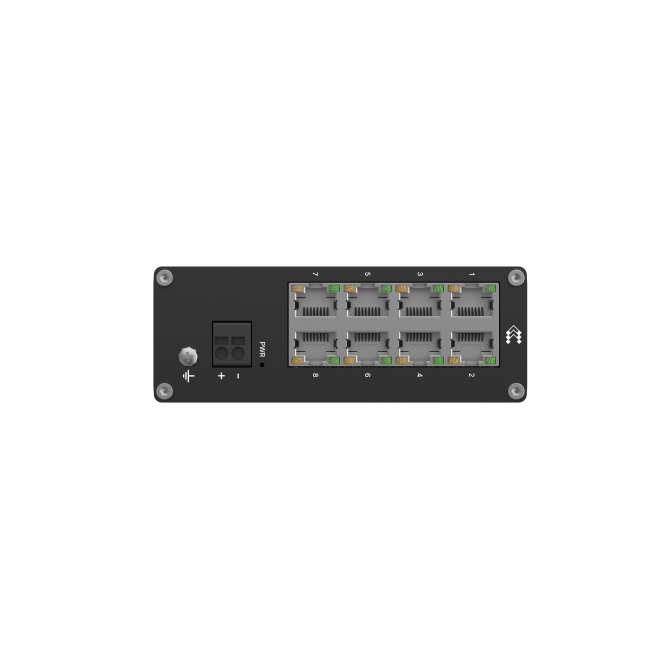 Imagen del Teltonika Switch TSW030 con 8 puertos RJ45 y velocidad de 100Mbps, SKU TSW030000000