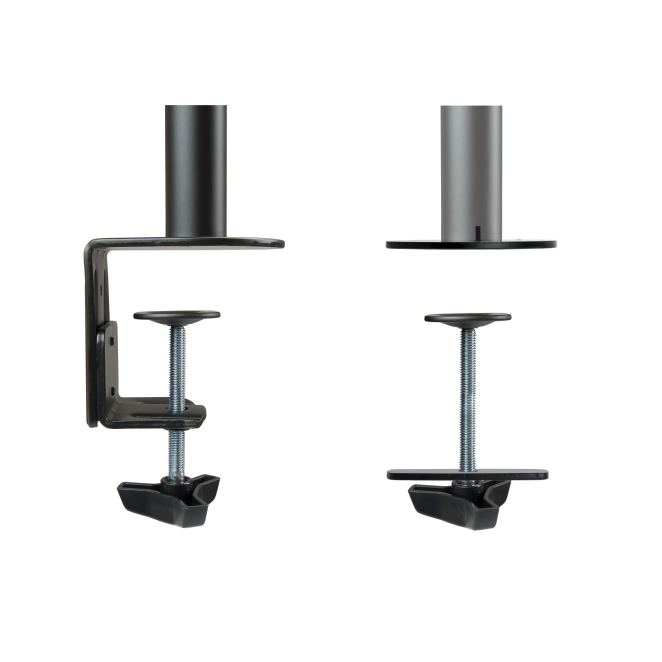 La instalación del TooQ Soporte de Mesa Giratorio e Inclinable para Pantalla es sencilla y puede realizarse mediante abrazadera o atornillado, adaptándose así a varios tipos de mesas.