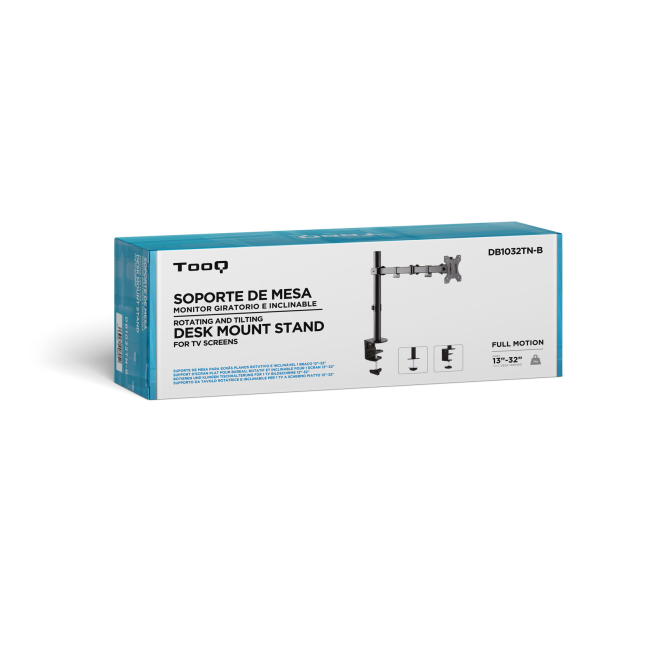 Soporte de mesa giratorio e inclinable TooQ para pantalla de 13 a 32 pulgadas, un brazo, carga máxima 8 kg, color negro. SKU: DB1032TN-B