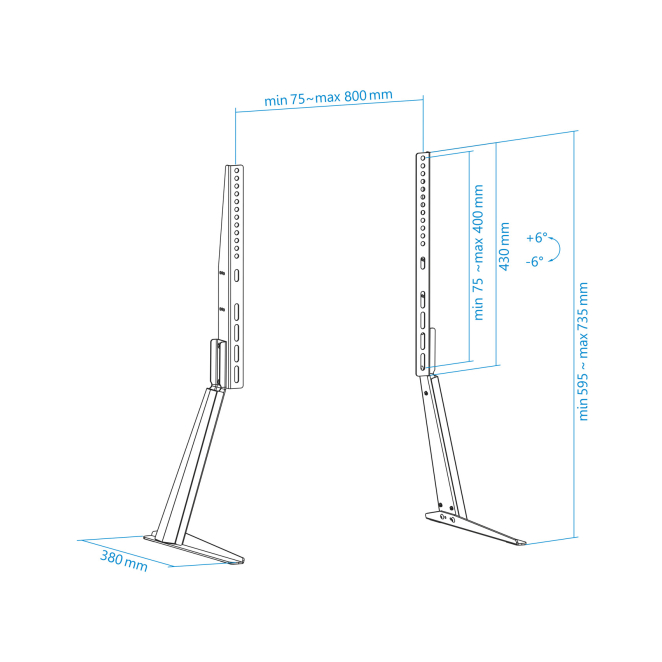 El ajuste de altura del TooQ soporte de mesa para pantallas 32”-70” es manual y permite ajustar la altura en un rango de 595 mm a 735 mm.