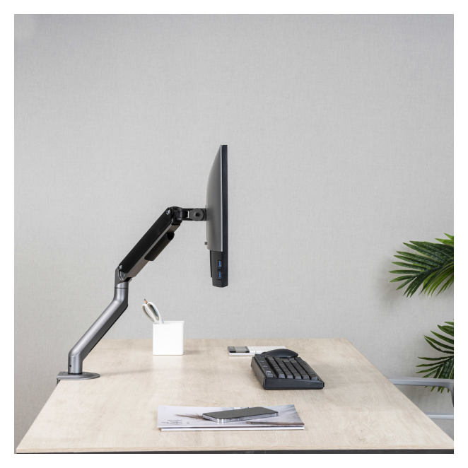 TooQ DB4032TNR-G soporte para monitor ofrece múltiples ventajas que mejoran la ergonomía y la eficiencia en la oficina. Este soporte para monitor asegura una postura correcta gracias a sus ajustes de altura y ángulo, reduciendo la tensión en el cuello y los ojos. La capacidad de extensión del brazo de hasta 516 mm permite adecuar la distancia de la pantalla según las necesidades individuales, promoviendo una disposición personalizada del espacio de trabajo. Con un diseño resistente, el soporte monitor negro puede sostener hasta 9 kg, ideal para monitores más grandes y pesados. La gestión de cables asegura un espacio libre de desorden, manteniendo la apariencia de su escritorio elegante y profesional.