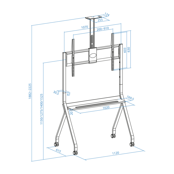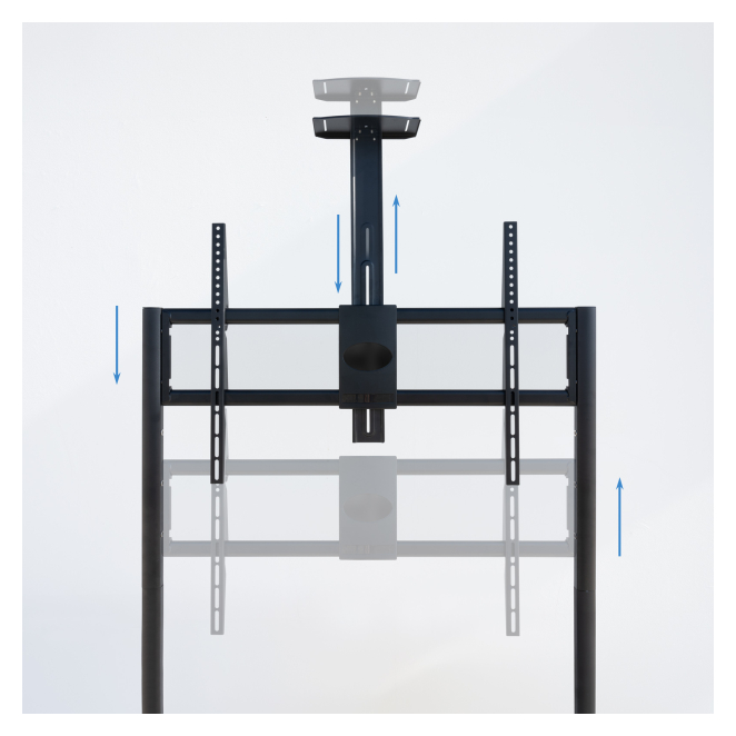 La posibilidad de ajustar la altura entre 1150 y 1525 mm permite una visualización óptima en cualquier entorno.
