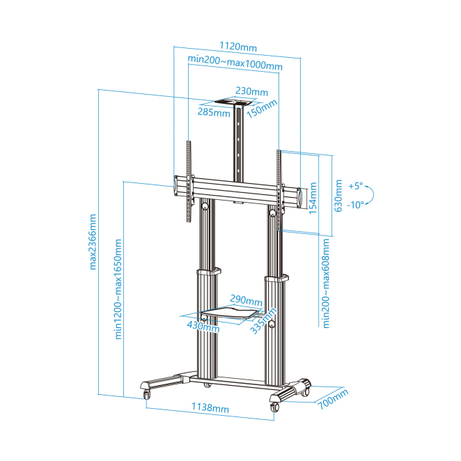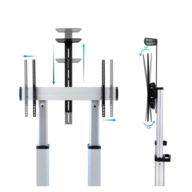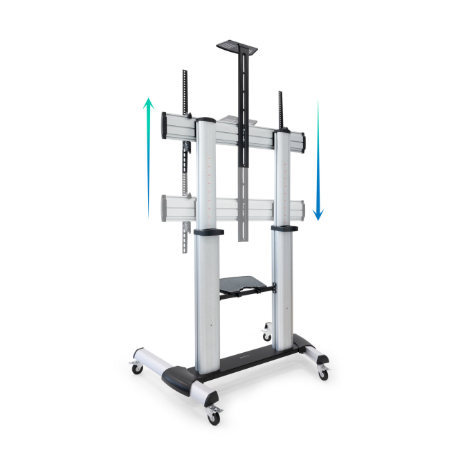 Descubre el soporte de suelo con ruedas TooQ Partenón, ideal para pantallas de 60″ a 100″. Este robusto soporte en color plata está diseñado para proporcionar una solución segura y móvil para tus presentaciones. Con ajustes manuales de altura e inclinación, el soporte de suelo TooQ Partenón garantiza una experiencia visual óptima. Perfecto para entornos tanto profesionales como domésticos, el soporte de suelo TooQ Partenón es compatible con una amplia gama de interfaces de montaje y está equipado con cuatro ruedas, una de las cuales se puede bloquear para mayor estabilidad.