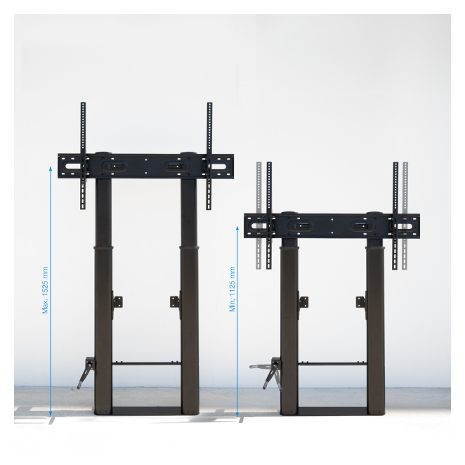Ajuste de altura y ángulo: Configura la altura de 1125 a 1525 mm y el ángulo de inclinación de -10° a 5° para una visualización óptima.