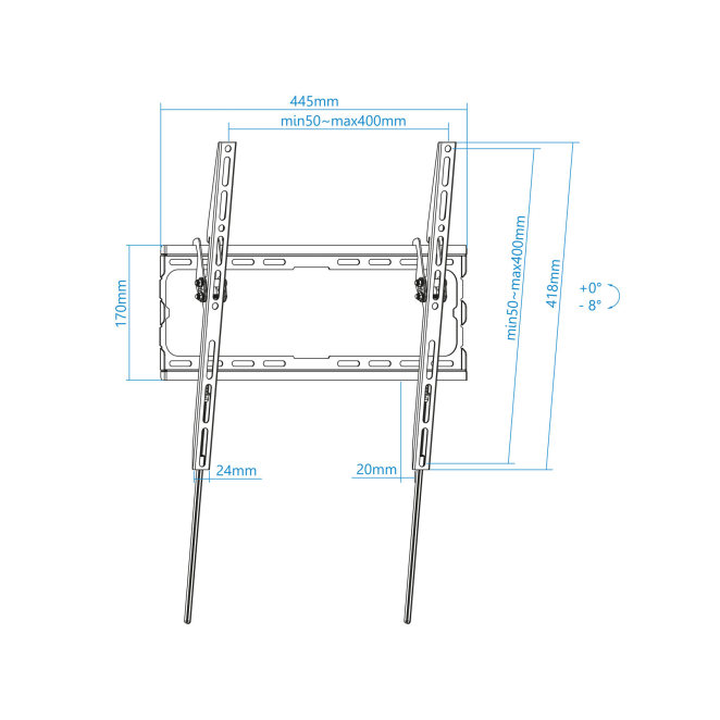 El TooQ LP1071T-B permite ajustar la inclinación de la TV entre -8 a 0 grados.