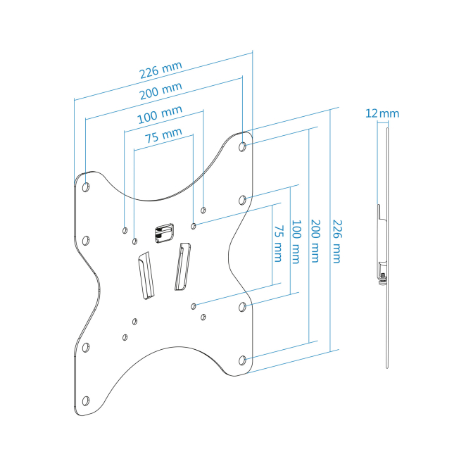 100 x 100 mm, 200 x 100 mm, 200 x 200 mm, 75 x 75 mm |