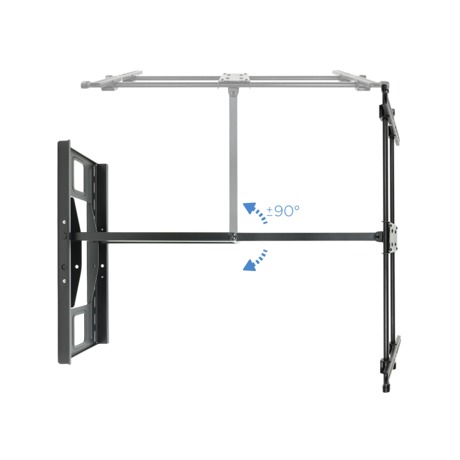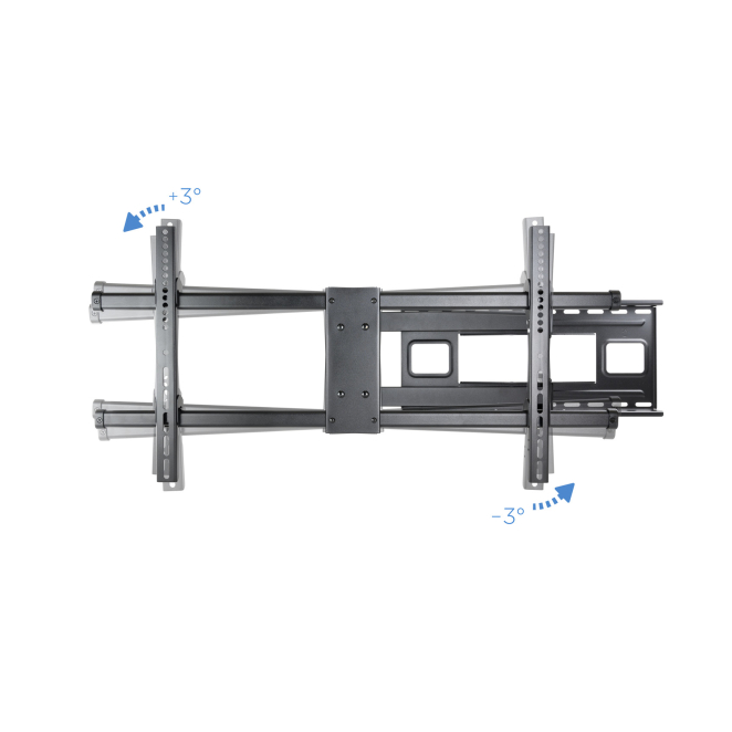 El soporte TV negro TooQ LP4380XL-B permite ajustes de inclinación de -15° a +5° y giro de -90° a +90°, asegurando máxima flexibilidad en la visualización.
