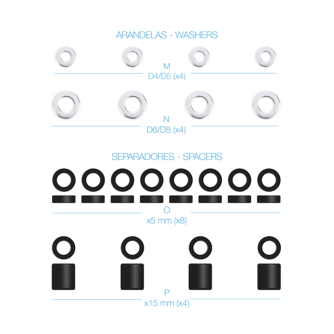 El TooQ SSK4820 incluye un total de 68 piezas de tornillería, separadores y arandelas.