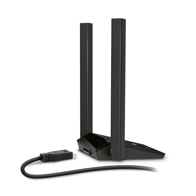 Las antenas externas del adaptador TP-Link Archer TX20U Plus mejoran significativamente la cobertura y la estabilidad de la señal, proporcionando una conexión más robusta y de mayor alcance.