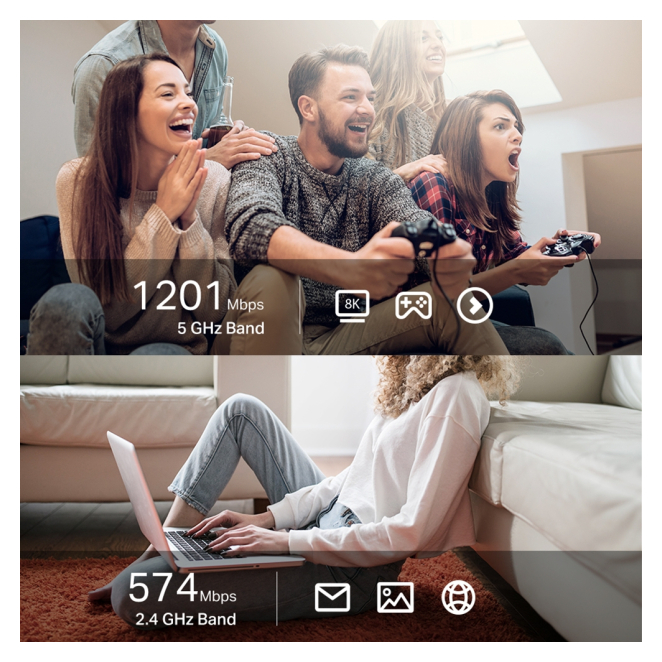 Doble banda: Ofrece una conexión flexible mediante bandas de 2,4 GHz y 5 GHz, adaptándose a diferentes necesidades de velocidad y estabilidad.