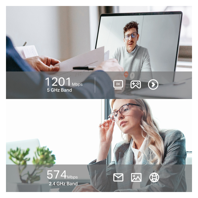 Experimente transferencias de datos rápidas con hasta 1201 Mbit/s gracias al WiFi dual-band del TP-Link Archer TX20UH.