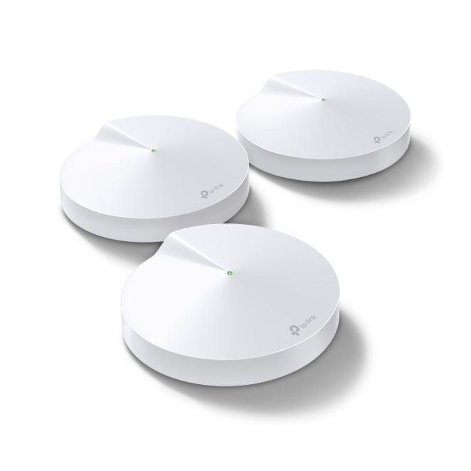 Imagen del sistema WiFi de doble banda TP-Link Deco M5 (3-pack) en blanco, con soporte para 2,4 GHz y 5 GHz, estándar 802.11ac. SKU: Deco M5(3-Pack)