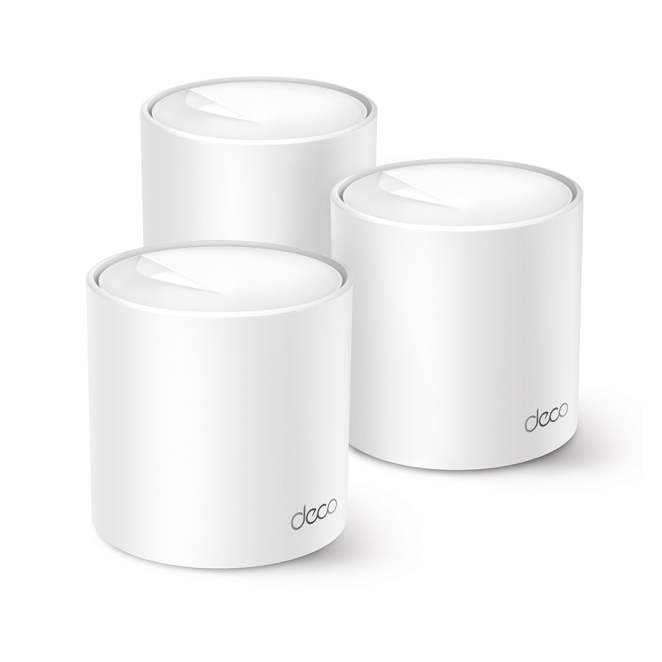 El paquete incluye tres unidades del enrutador de malla TP-Link Deco X10, proporcionando una cobertura amplia para tu hogar o negocio.