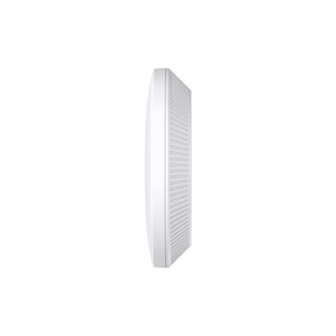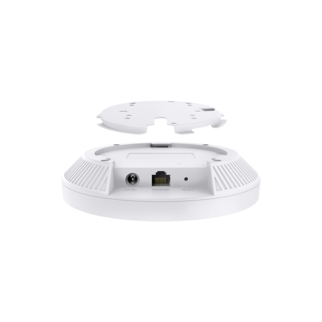 Imagen del TP-Link EAP723, un punto de acceso inalámbrico de 3600 Mbit/s en color blanco, con soporte para Energía sobre Ethernet (PoE). SKU: EAP723.