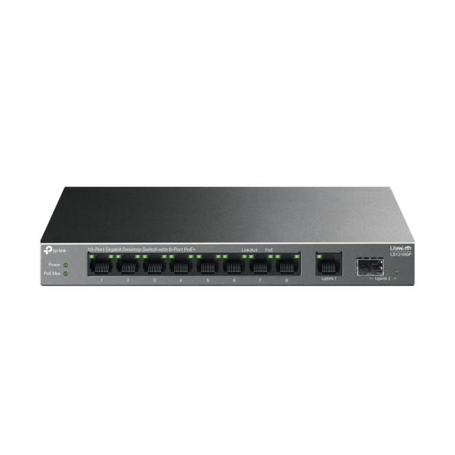 TP-Link LiteWave LS1210GP switch no administrado Gigabit Ethernet (10/100/1000), Energía sobre Ethernet (PoE), SKU LS1210GP, negro