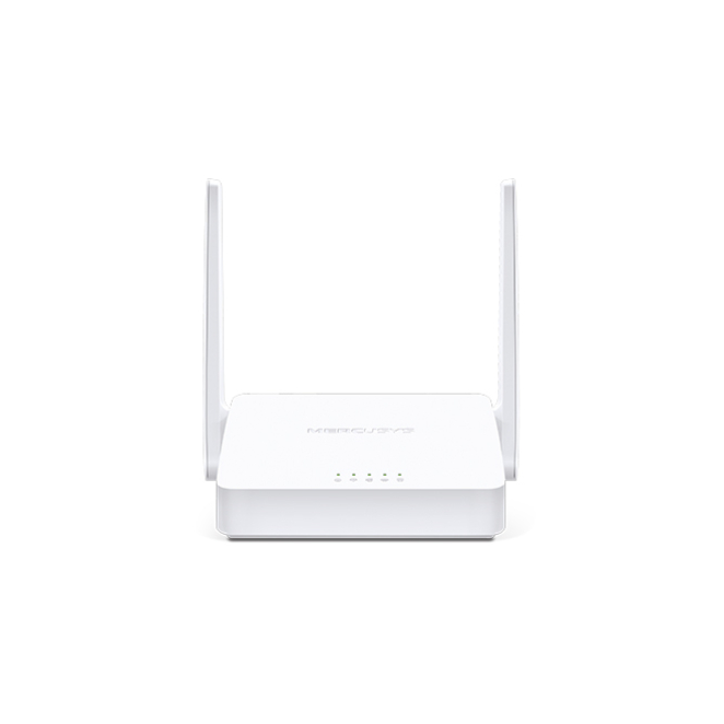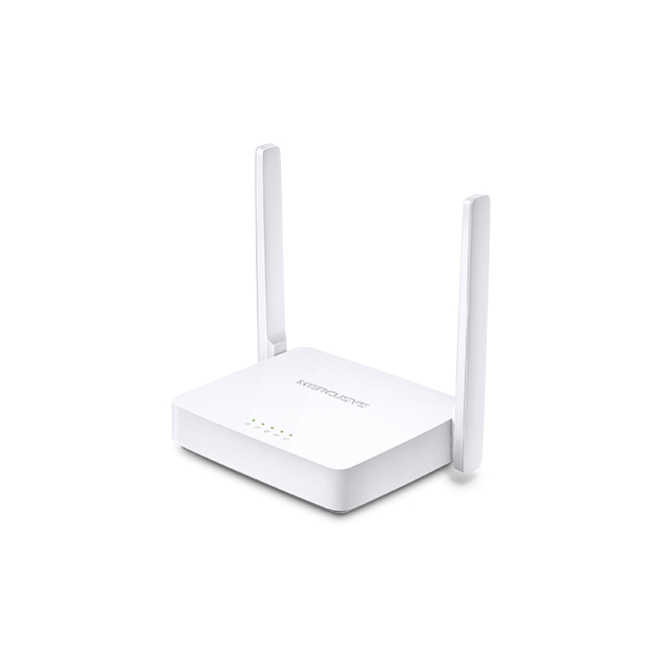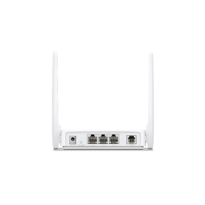 Imagen del router inalámbrico Mercusys MW300D con conectividad Ethernet, banda única de 2.4 GHz en color blanco. SKU: MW300D