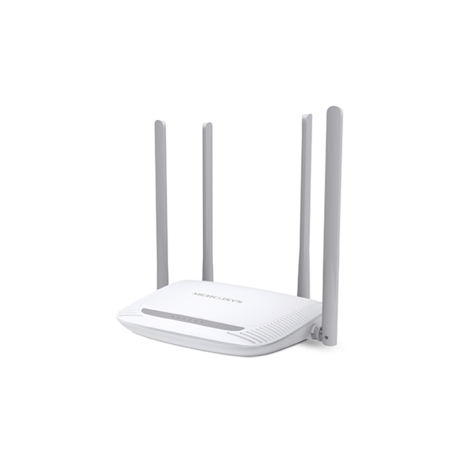 Imagen del Router inalámbrico Mercusys MW325R con conexión rápida Ethernet y banda única de 2.4 GHz, SKU MW325R, color blanco.