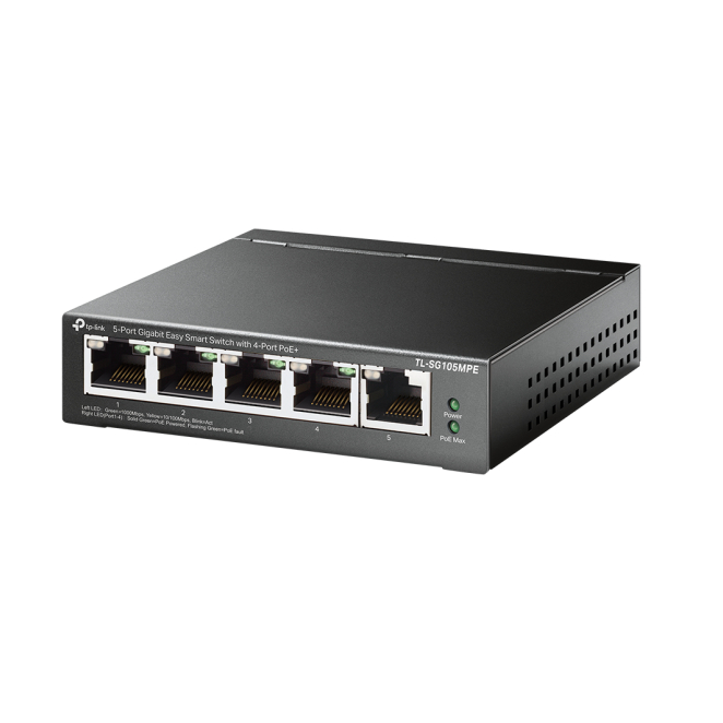 El TP-Link TL-SG105MPE es un switch de red compacto diseñado para ofrecer conectividad Gigabit Ethernet (10/100/1000) con la eficiencia de la Energía sobre Ethernet (PoE). Este dispositivo es ideal para entornos profesionales y oficinas que requieren una instalación sencilla y eficiente. Con 5 puertos Gigabit, este switch ofrece una capacidad de conmutación de 10 Gbps, asegurando un rendimiento óptimo en redes locales. El TP-Link TL-SG105MPE además es un switch capa 2, lo que significa que proporciona capacidades de conmutación avanzadas con administración basada en web, perfectas para una red local robusta y eficiente.