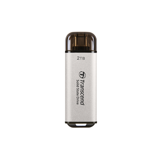 Disco duro externo Transcend ESD300 de 2 TB con USB Tipo C en color plata, SKU TS2TESD300S