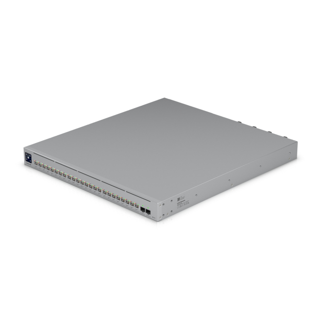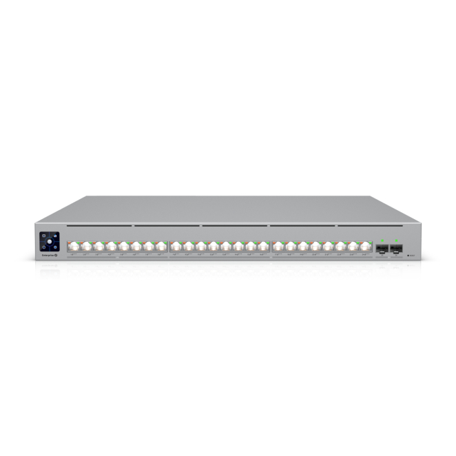 El Ubiquiti UniFi ECS-24-POE cuenta con 24 puertos RJ-45 Ethernet 10G (100/1000/10000), proporcionando una alta velocidad de transmisión de datos.