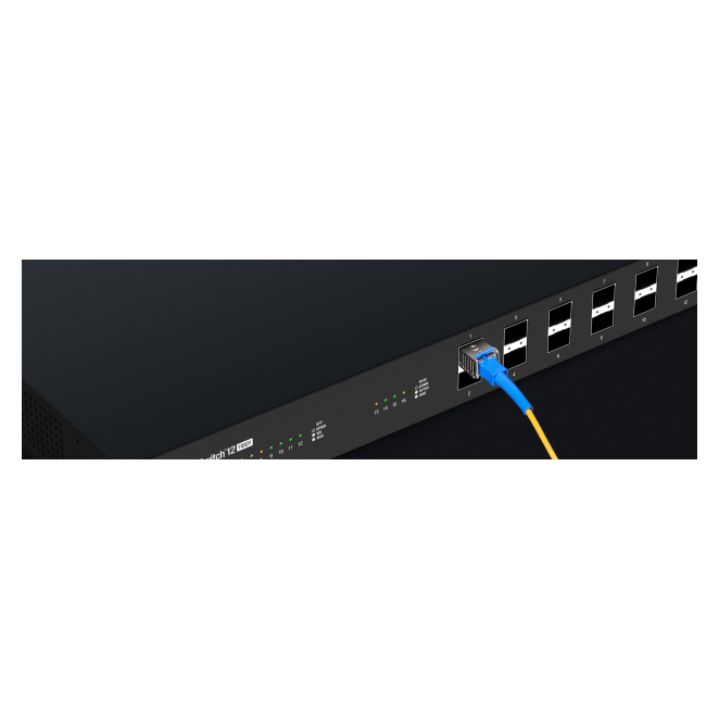 Alta capacidad de conmutación: Con 32 Gbit/s, el Ubiquiti ES-12F maneja ágilmente grandes volúmenes de tráfico.