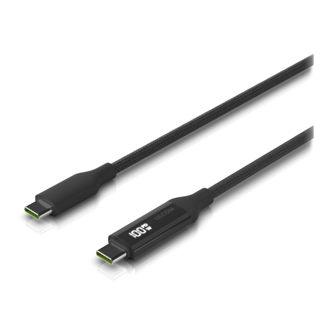 Cable USB-C Ubiquiti UACC-Cable-USB-100W-1M-BK de 100W, longitud de 1 metro, color negro y gris, SKU: UACC-Cable-USB-100W-1M-BK