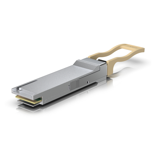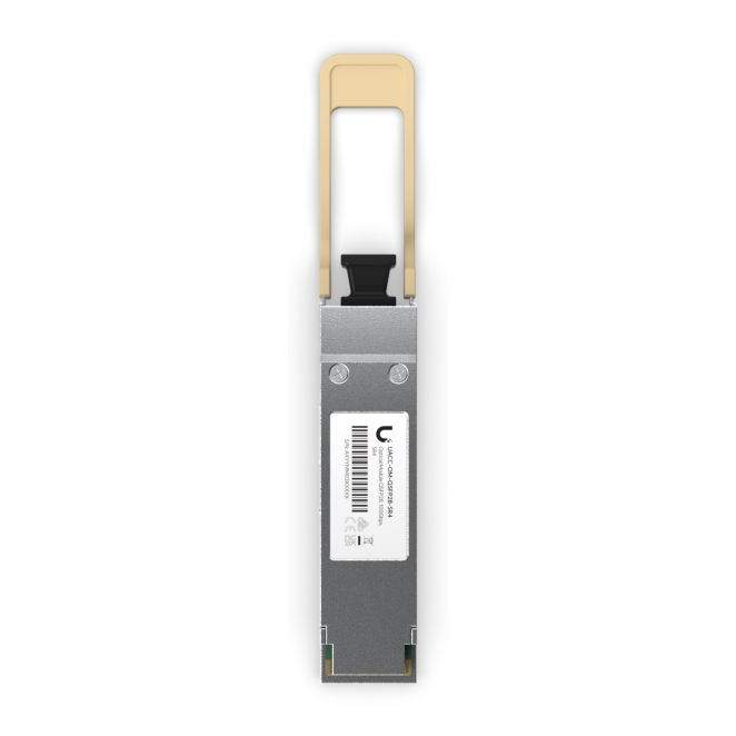 El módulo transceptor Ubiquiti se instala fácilmente gracias a su interfaz QSFP28, que permite una conexión rápida y eficiente, facilitando la labor de instalación y mantenimiento.