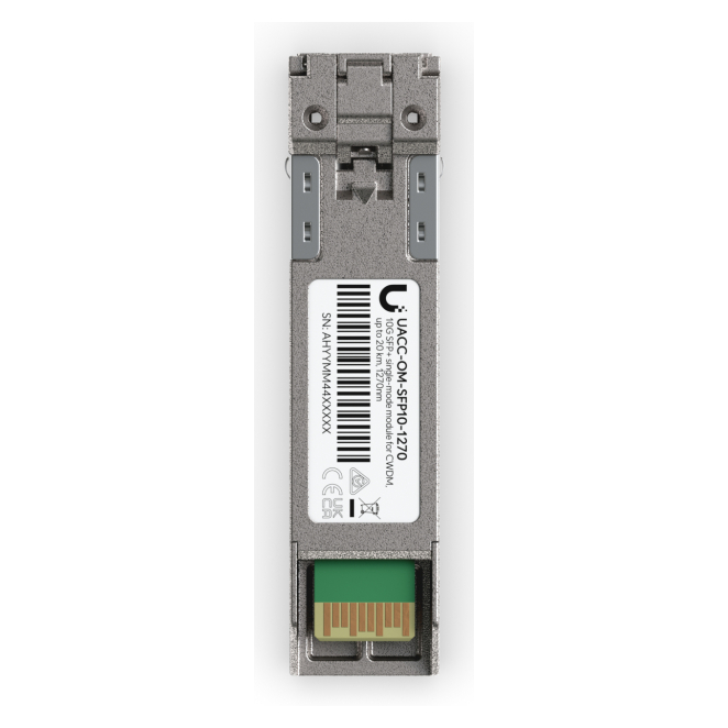 Imagen del Ubiquiti UACC-OM-SFP10-1270, un módulo transceptor de fibra óptica con velocidad de 11300 Mbit/s, SFP+ y 1270nm SKU UACC-OM-SFP10-1270