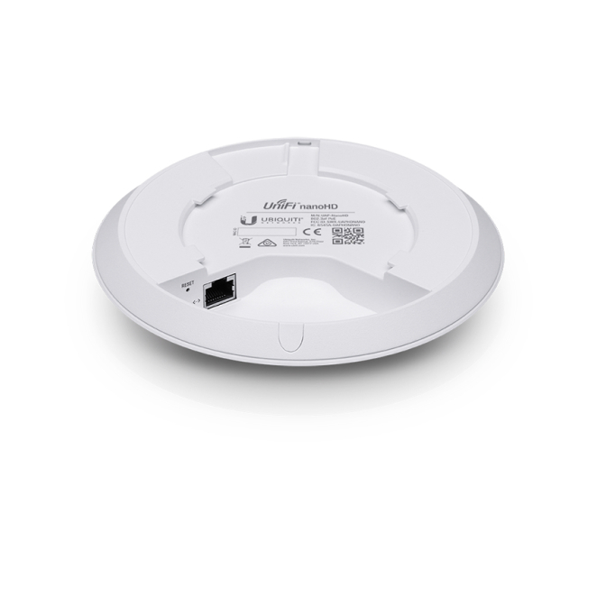 Ubiquiti UniFi nanoHD. 2,4 GHz, 5 GHz, Rango máximo de transferencia de datos: 1733 Mbit/s. Algoritmos de seguridad soportados: AES, TKIP, WEP, WPA, WPA-Enterprise, WPA-PSK, WPA2. Ethernet LAN, velocidad de transferencia de datos: 10,100,1000 Mbit/s. Energía sobre Ethernet (PoE). Color del producto: Blanco