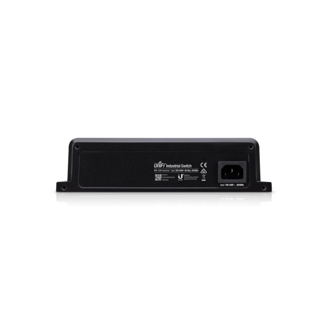 Imagen frontal del switch industrial gestionado Ubiquiti UniFi L2 Gigabit Ethernet (10/100/1000) con energía sobre Ethernet (PoE) en color negro – SKU USW-INDUSTRIAL