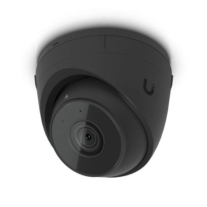 Cámara de seguridad Ubiquiti G5 Turret Ultra con resolución de 2688 x 1512 píxeles, instalada en techo o pared. SKU: UVC-G5-Turret-Ultra-B.