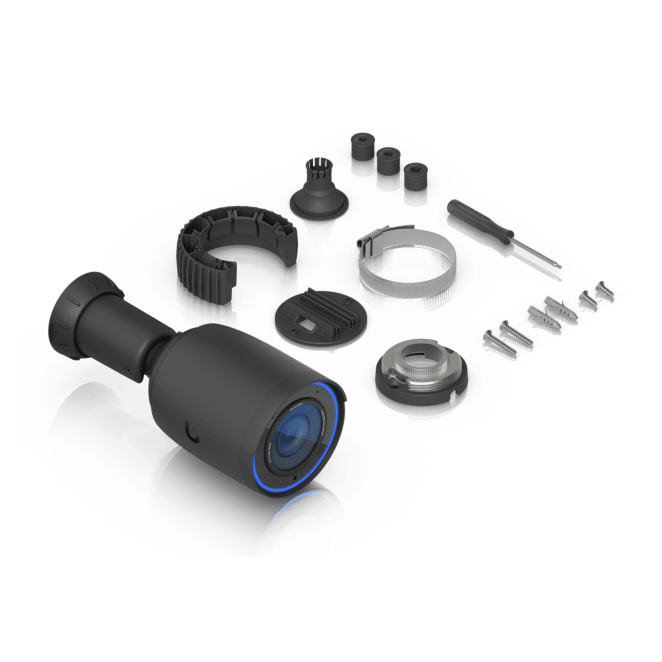 Imagen de la cámara de seguridad IP Ubiquiti G6 Pro Bullet UVC-G6-Pro-B, resolución 4K de 3840 x 2160 píxeles, montable en techo, pared o poste.