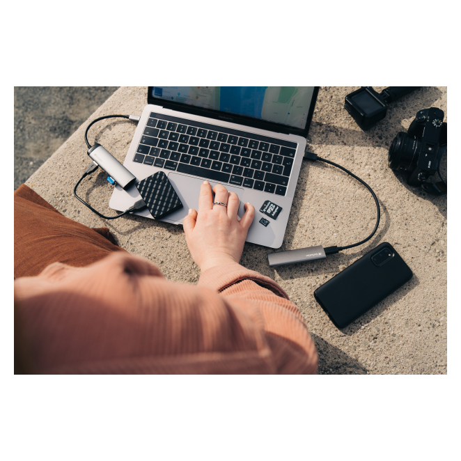 Simplemente conecte el hub a su puerto USB-C y comience a utilizar los puertos adicionales inmediatamente, sin necesidad de configuraciones complicadas.
