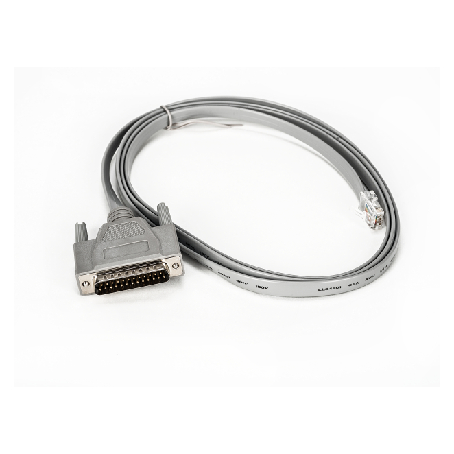 Conectores fiables: Los conectores RJ-45 y DB-25 macho garantizan una conexión segura y robusta.