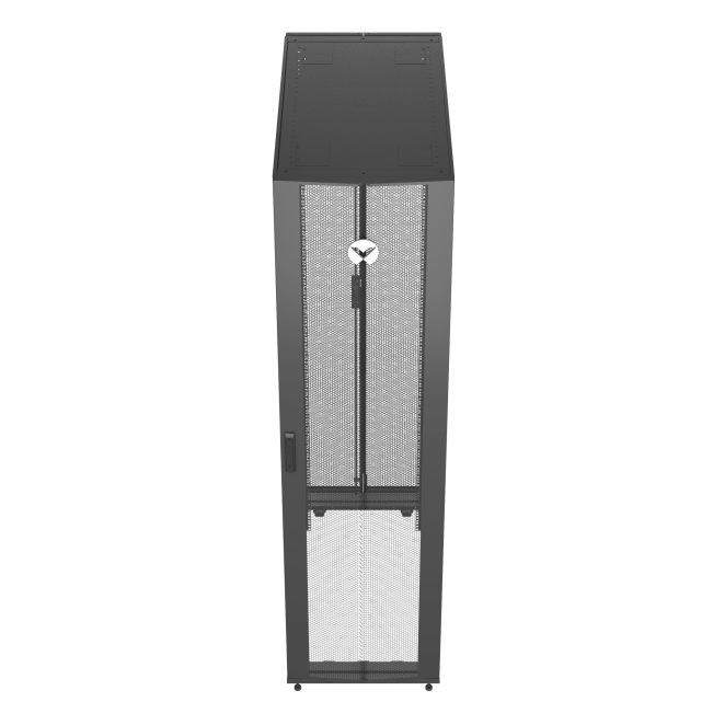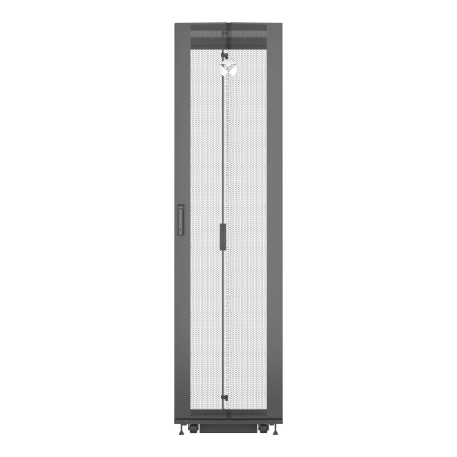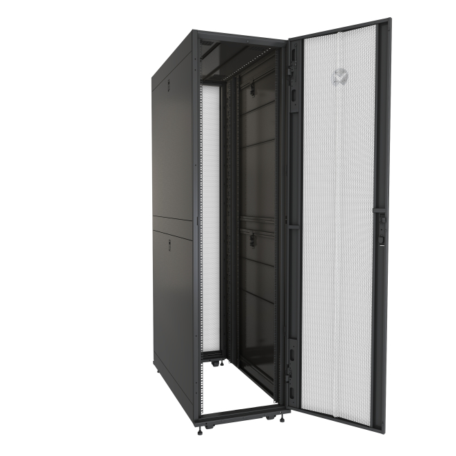 Vertiv VR3307, armario rack de 48U. Rack o bastidor independiente color negro con puertas transparentes, ideal para centros de procesamiento de datos (SKU: VR3307)