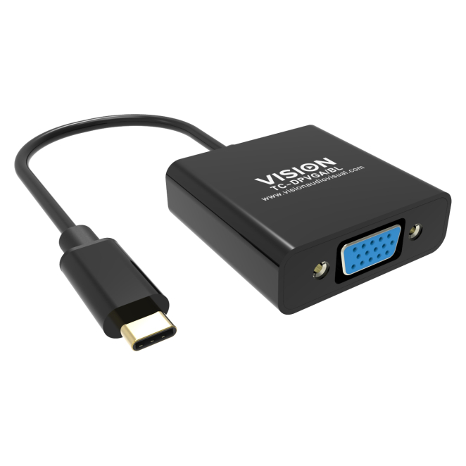 Adaptador de vídeo Vision modelo TC-USBCVGA/BL, conecta USB Tipo C a VGA D-Sub, color negro