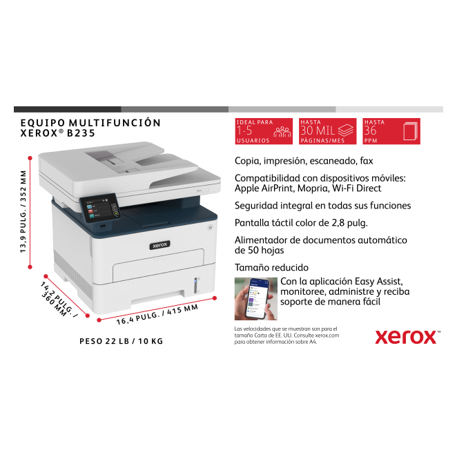 Existen varias razones convincentes para adquirir la Xerox B235 A4: